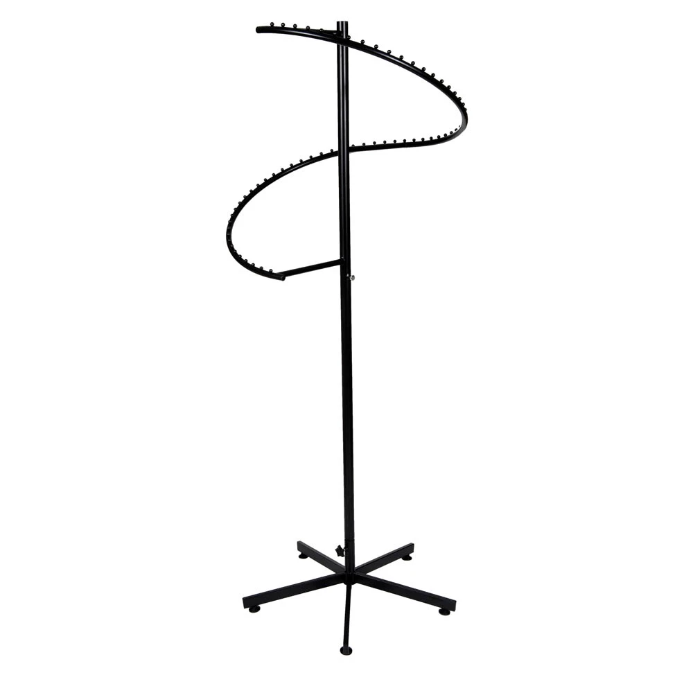 Retail quality UK made black spiral merchandising clothes rail. Stands 1900mm High and has 63 Ball stops for garments. The unit comes with a Black matt 5 Star base. Easy to assemble spiral rails which offer high density presentation within a small floor space. UK manufactured, ideal for retail environment, fitted with balls to locate garments to. Perfect for merchandising. The distance between each ball on our spiral clothes rails is 1 inch. Please allow around 10-14 working days for delivery.