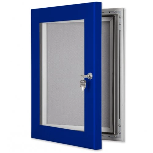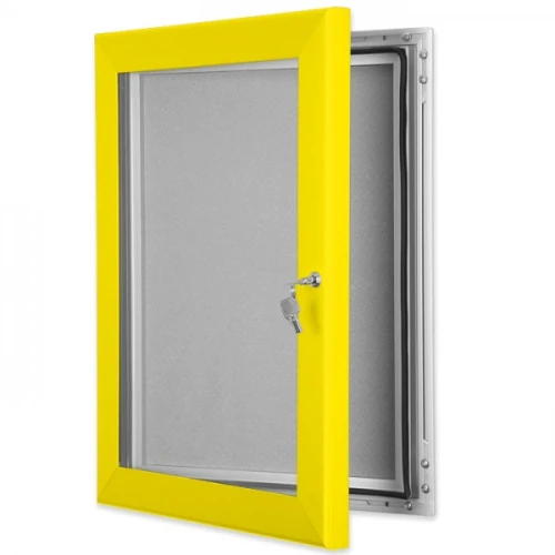 very heavy duty frame profile, high specification lock and hinge system. These secure Pin Boards are available in seventeen frame colour finishes and four felt colours.