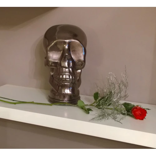 These silver glass skulls will prove to be a stylish addition to your displays - it’s a no brainer! Our recycled glass skeleton display heads are ideal for the retail environment and perfect for merchandising in shop window displays. Height - 26.5cm : Width - 15.5cm : Depth - 19.5cm. Available in various colours.